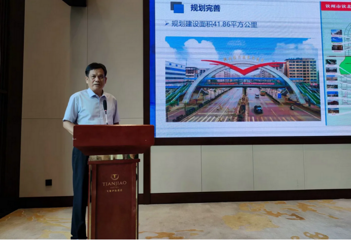 潘运精向参会的各位领导、各省院士及企业家代表简要介绍钦北区基本情况、钦北经济技术开发区概况及平陆运河经济带(钦北段)产业发展方向等内容,重点介绍了钦北锰基新能源材料产业发展现状及规划布局。他表示,钦北区秉承“专、精、新”的发展理念,以钦州高端医药精细化工产业园为平台,围绕园区现有埃索凯、锰华等龙头企业,当前正在全力引进一批负极材料、隔膜等新能源电池产业链项目,力争将产业做大做强,打造全国锰基新能源材料产业集聚区,三元锂电池前驱体锰基材料新高地。预计到”十四五“末,钦北区锰基新能源材料在国内的占有率达50%以上,牢牢把握国内市场,发展前景广阔,欢迎各位专家学者及企业家到钦北区调研考察、投资创业。