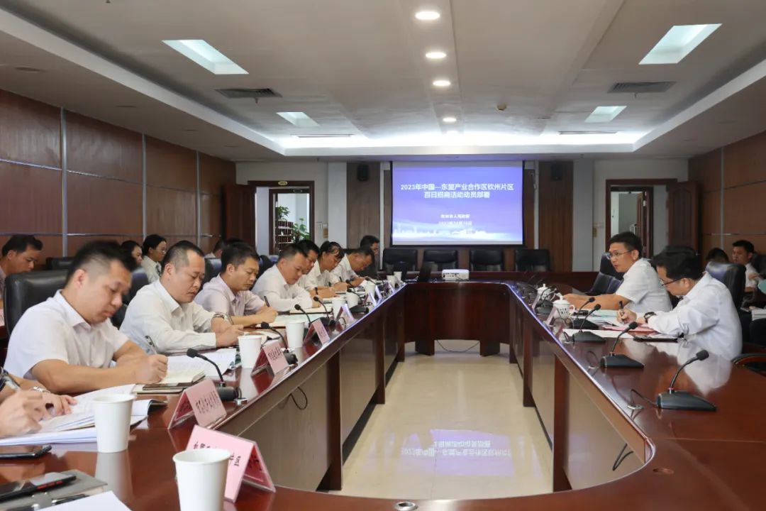 市投资促进局作2023年中国—东盟产业合作区百日招商活动工作部署,各县区人民政府、钦州高新区管委、市发展改革委(市北部湾办)、市石化产业发展局、自贸区钦州港片区招商服务中心等参加会议,并就中国—东盟产业合作区招商计划及承载条件进行汇报交流。