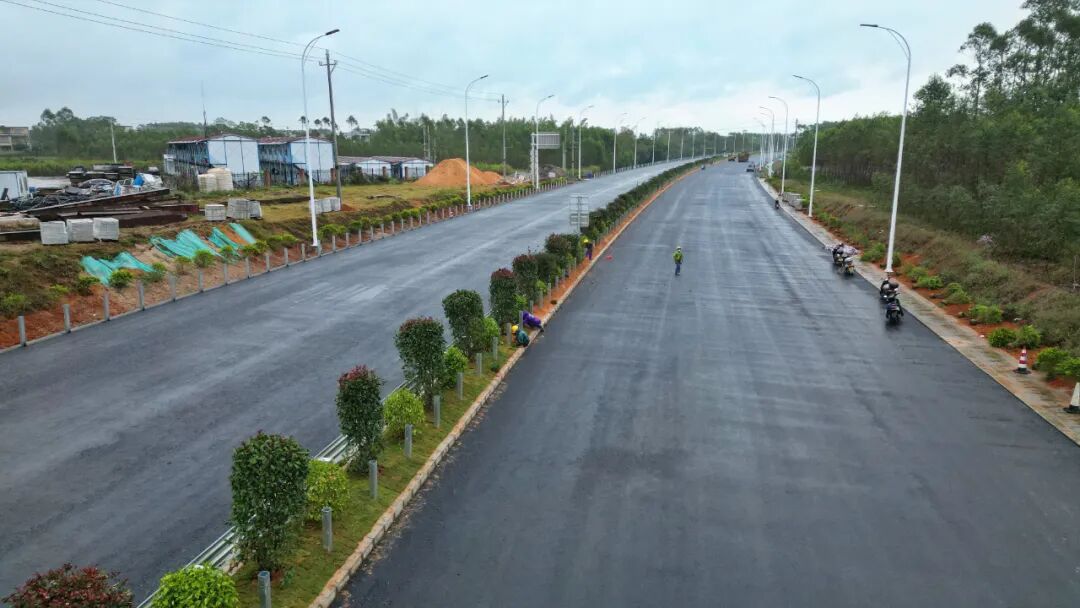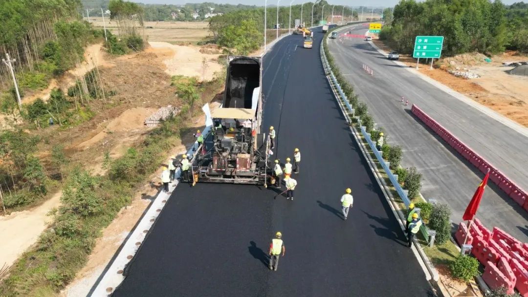路基段已经完成沥青上中下面层试验段并通过首件总结,目前正紧张有序地进行北海侧路面摊铺工作。