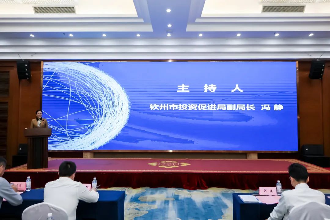 ▲钦州市投资促进局副局长冯静主持会议