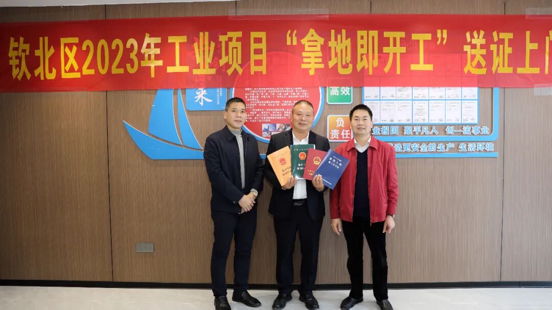 据了解,广西仙玻节能玻璃有限公司仙玻折弯高频焊中空铝条生产项目是钦州市“行动学习+工业振兴”示范项目,是钦北区第二批拿地即开工的项目,也是钦北区自2021年实施“拿地即开工”以来的深入体现,更是钦北区深化“放管服”改革和全力推进“便民利企”的新起点。广西仙玻节能玻璃项目占地总面积33.5亩,钦州市自然资源局12月7日公告出让土地,在挂牌拍卖公告期间(20天),钦州市自然资源局指导区自然资源局等部门,多次深入走访企业,了解企业诉求,充分运用行动学习的思维理念和工作方法,围绕项目存在的问题,复盘反思,研讨剖析,找到解决问题的有效措施,统筹推进“四证”办理。今天上午10时挂牌成功,钦北区自然资源局、钦北区住建局提前介入资料审查,主动服务,土地挂牌成功后仅用90分钟就办理了不动产权证、用地规划许可证、工程规划许可证和施工许可证,做到“拿地即开工”四证齐发,为企业加快投资建设,早日建成投产保驾护航。