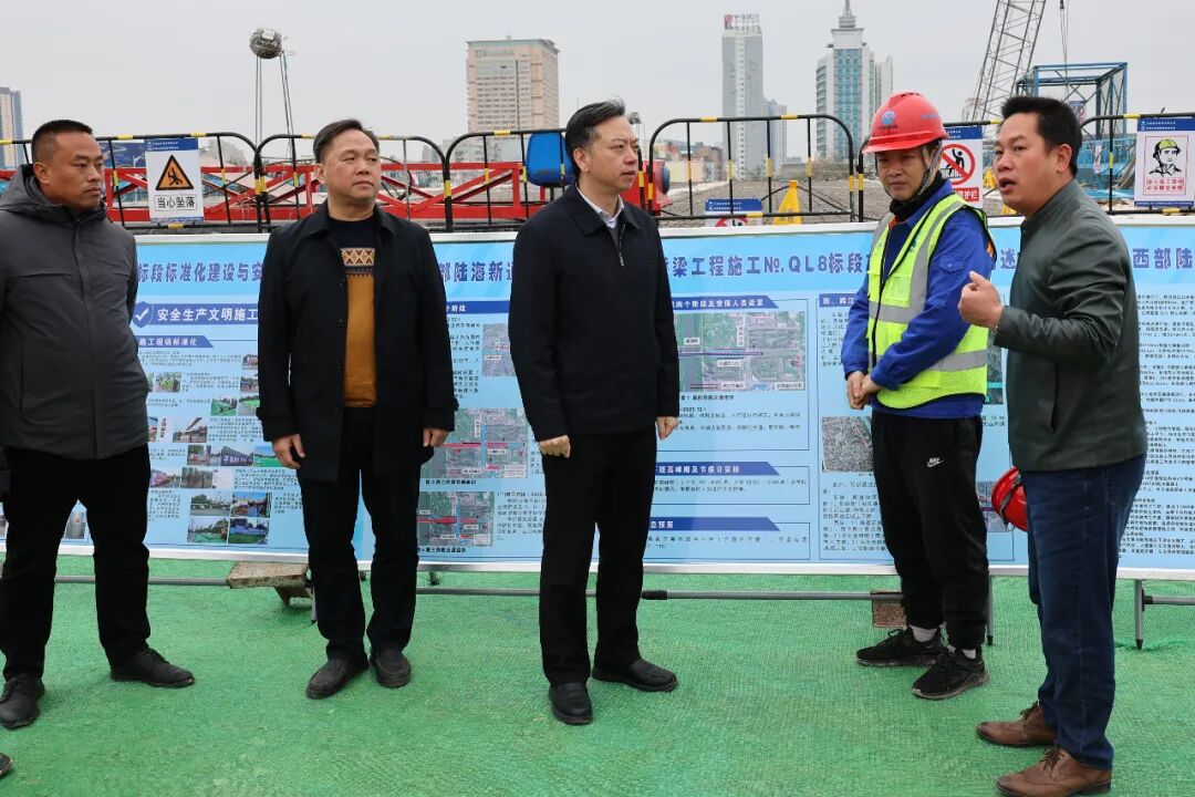 1月25日,区委书记黄治华带队开展2024年春节前安全生产大检查,并走访慰问企业和优秀人才。黄治华先后来到平陆运河二桥保通桥、鸿发市场、广西东岚新材料有限公司、广西钦州市埃索凯循环科技有限公司、广西致远实业有限责任公司、广西钦江药业有限公司等地,详细了解企业生产经营管理、企业库存、安全管理人员配备和企业安全生产工作等工作落实情况。