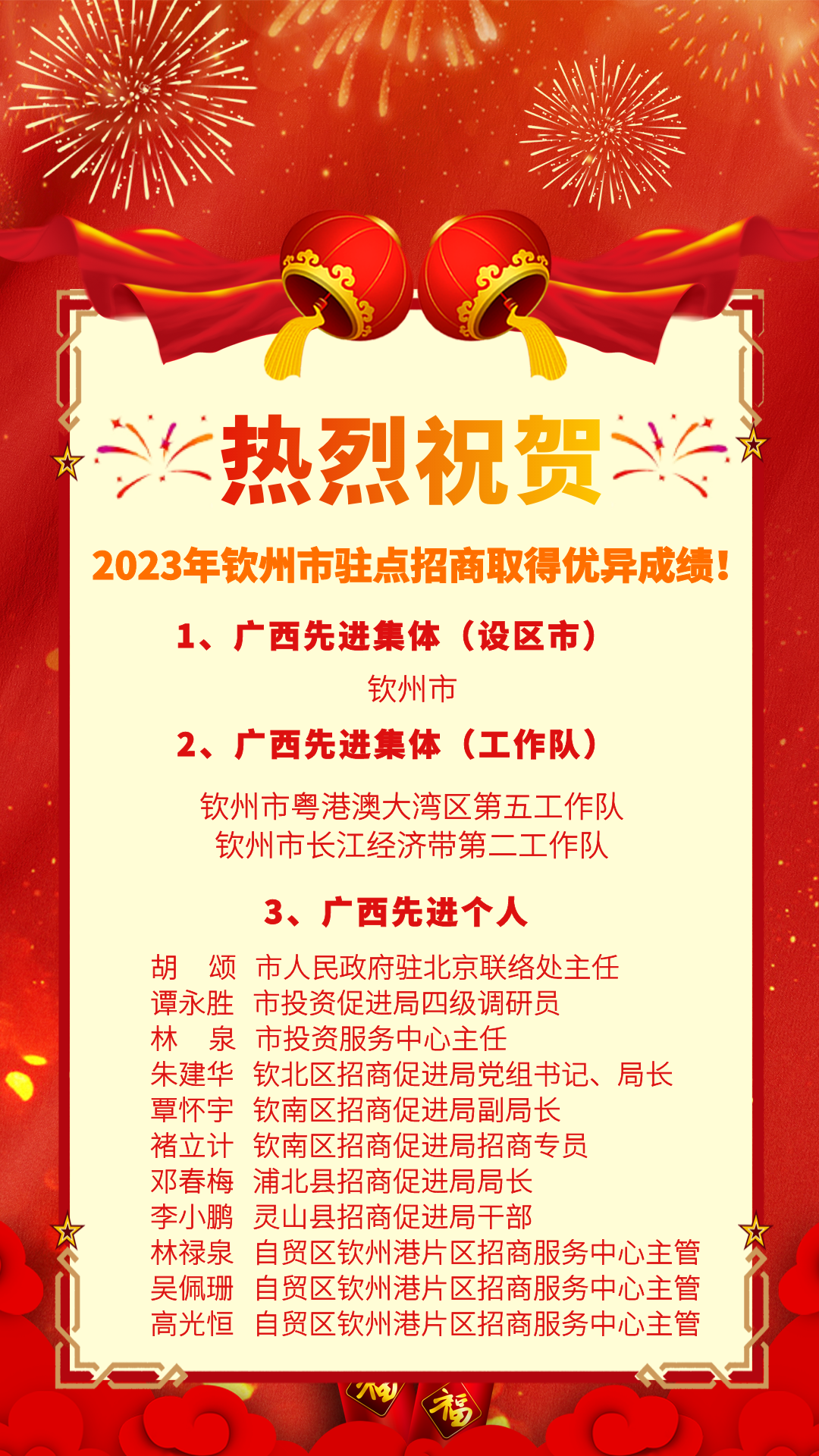 近日,自治区产业园区改革发展办公室在南宁市举办2024年全区驻点招商工作动员部署暨业务培训会议,会议对2023年广西驻点招商工作先进集体、先进个人进行了通报表扬并颁奖。钦州市榜上有名,荣获“2023广西驻点招商工作先进集体”称号。此次是钦州市连续第三个年度获此荣誉。
