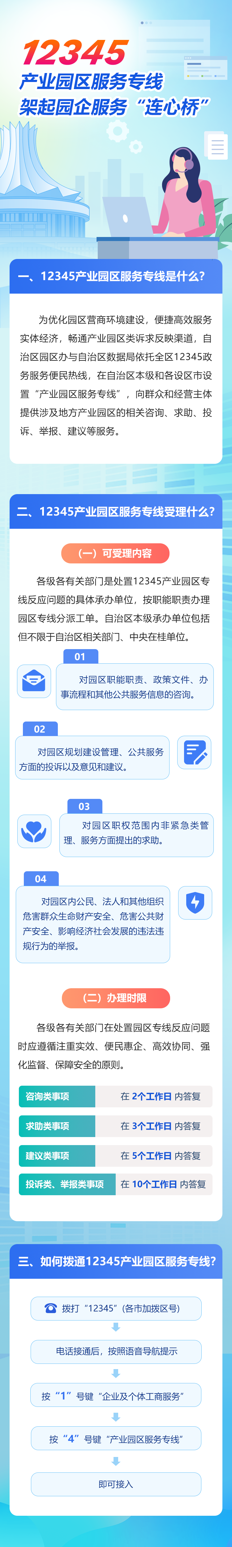 在自治区本级和各设区市开通“产业园区服务专线”畅通产业园区类诉求反映渠道什么是12345产业园区服务专线?12345产业园区服务专线受理什么?如何拨通12345产业园区服务专线?一起来看看
