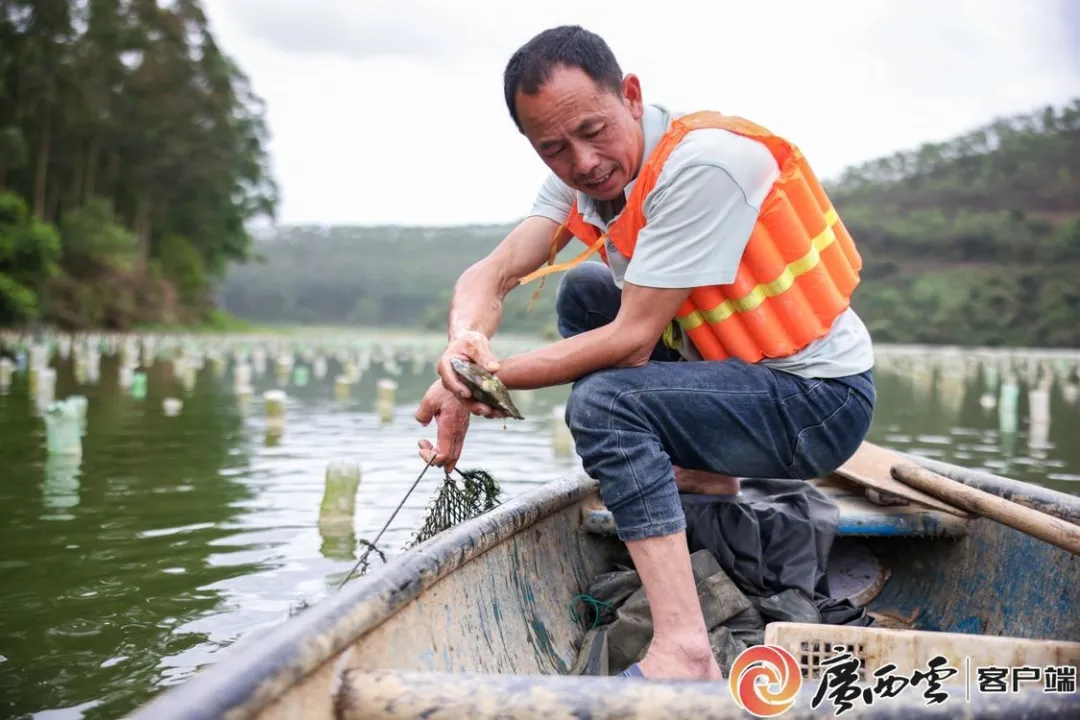 “插核是个需要长期积累经验的技术工作,有经验的插核工人日结工钱能拿到500元。高峰期,五星水库淡水珍珠养殖场有普工、技术工人120余名。”黄怡广说。朱林村村民韦彩免对此深有感触:“自从有了淡水珍珠养殖产业,我实现了在家门口就业,日结工资模式灵活,既赚了钱,还照顾了家庭。”她主要负责起蚌、养蚌等工作,每天收入有300元,平均每个月的收入超过6000元。言语间,她洋溢着幸福的笑容。
