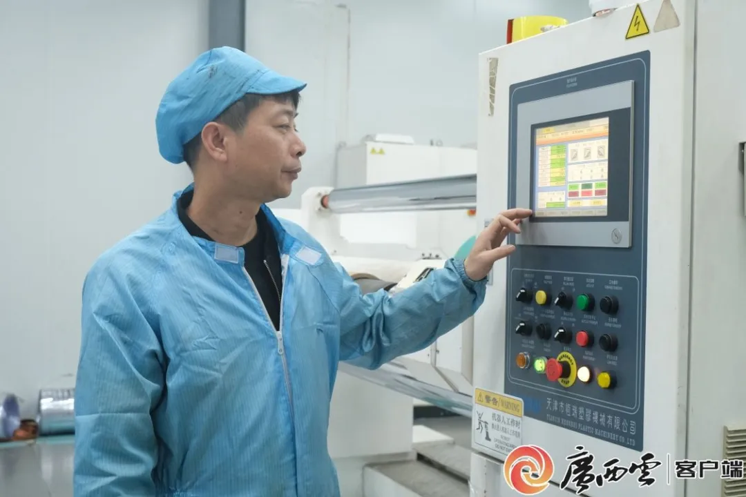 广西海枫光学材料科技有限公司内,工作人员正在操作设备。记者 冯源 摄