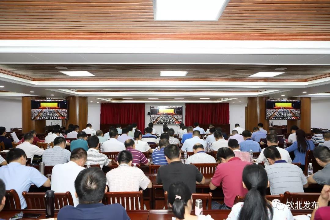 会议以电视电话会议形式召开,钦北区设分会场。钦北区委书记谢立品,区长黄治华,区人大常委会主任利东荣,区政协主席黄祥剑等区四家班子领导在钦北分会场参加。