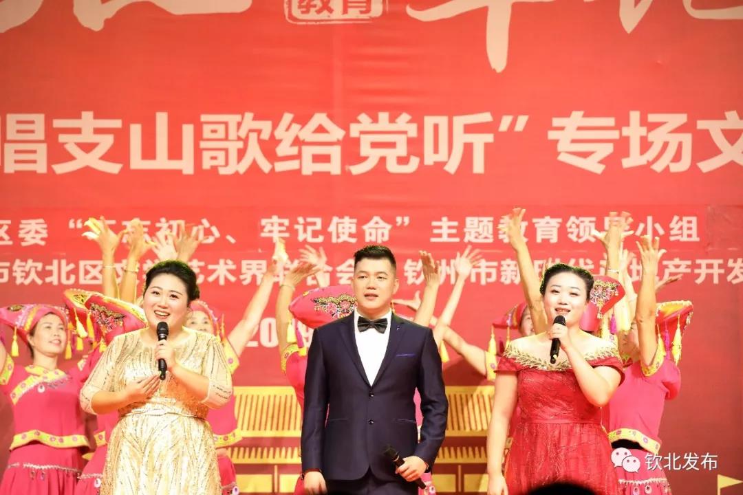 据了解,此场晚会是钦北区“不忘初心、牢记使命”主题教育“再唱山歌给党听”系列活动中一环,整台晚会以感恩新时代为主题,以“不忘初心、牢记使命”主题教育为主线,结合理论学习,以及“学党史,传承红色基因”“守初心、持恒心、强信心”“敢担当,攻坚克难当先锋”“比先进,对标对表找差距”“守规矩,清正廉洁作表率”等5个“不忘初心、牢记使命”主题教育专题内容进行创作。