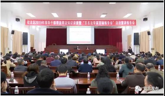 12月25日,钦北区2019年领导干部学法用法知识讲座暨“百名法学家百场报告会”法治宣讲报告会在区行政信息中心九楼综合会议室举行。广西民族大学法学院党委委员、院长助理、理论法教研室主任、副教授、硕士研究生导师、法学博士邓炜辉作专题辅导报告。