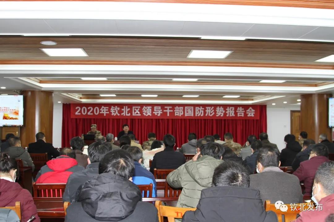 12月18日,钦北区领导干部国防形势报告会在区行政信息中心三楼中厅会议室召开。区人武部政治委员商红涛出席会议。