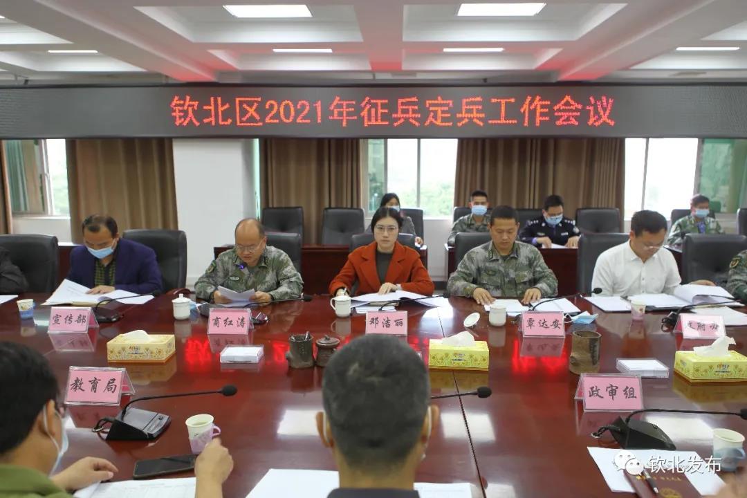 3月12日,钦北区召开2021年春季征兵定兵会议,对全区2021年春季预定新兵进行审定,并对下步工作进行安排部署。区长邓洁丽参加会议并讲话;区委常委、区人武部部长覃达安参加会议并现场审议定兵名单;区人武部政委商红涛主持会议。