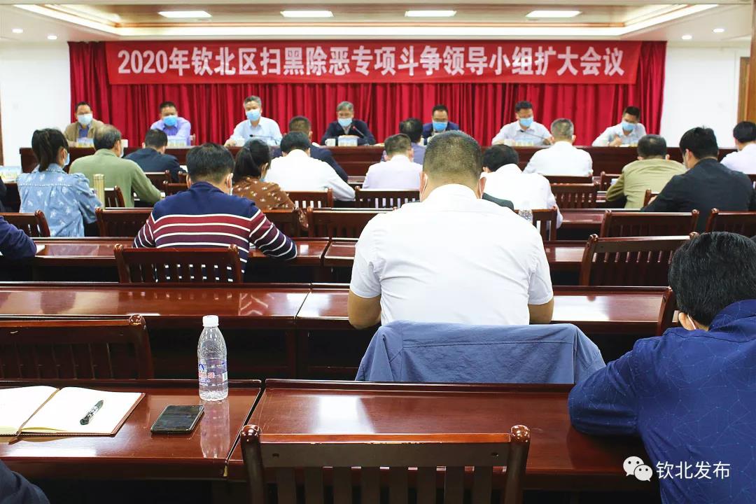 2020年4月16日,钦北区扫黑除恶专项斗争领导小组召开扩大会议。区委书记、扫黑除恶专项斗争领导小组组长谢立品出席会议并讲话,区委常委、办公室主任、扫黑除恶专项斗争领导小组副组长黄玉勇主持会议。