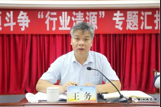 会上,区督查考评办通报我区扫黑除恶专项斗争行业清源百日攻坚行动落实情况;区市场监督管理局、区卫生健康局、公安钦北分局,区交通运输局、区水利局、钦北生态环境局等十大行业领域整治组相关牵头单位分别作经验交流或表态发言。