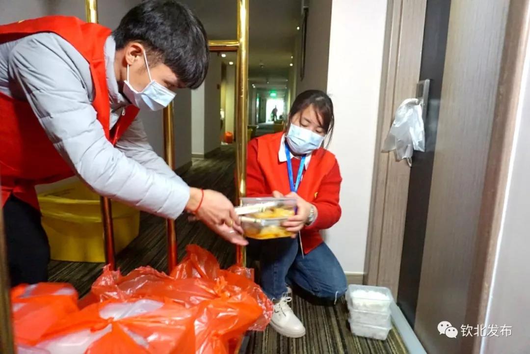 下沉力量,做好“战斗员”。“当你和家人相聚时,他们在村口为你‘遮风挡雨’。”这是我们青年防疫志愿者的真实写照,他们不计报酬,不辞辛劳,在钦州东站、高速公路、各进村路口和市场设置卡点,严格按照进出人员、车辆登记和体温监测排查相关要求,在出入口监测点做好登记排摸,坚决防止疫情输入扩散风险;到集中隔离管控点协助做好送餐、消毒、便民等工作,提供“人性化服务”,做到“隔离病毒但不隔离爱”。