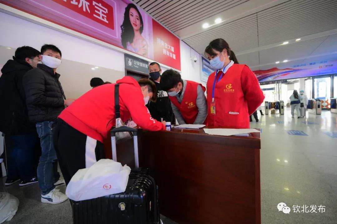 △在钦州东站开展到钦人员登记工作