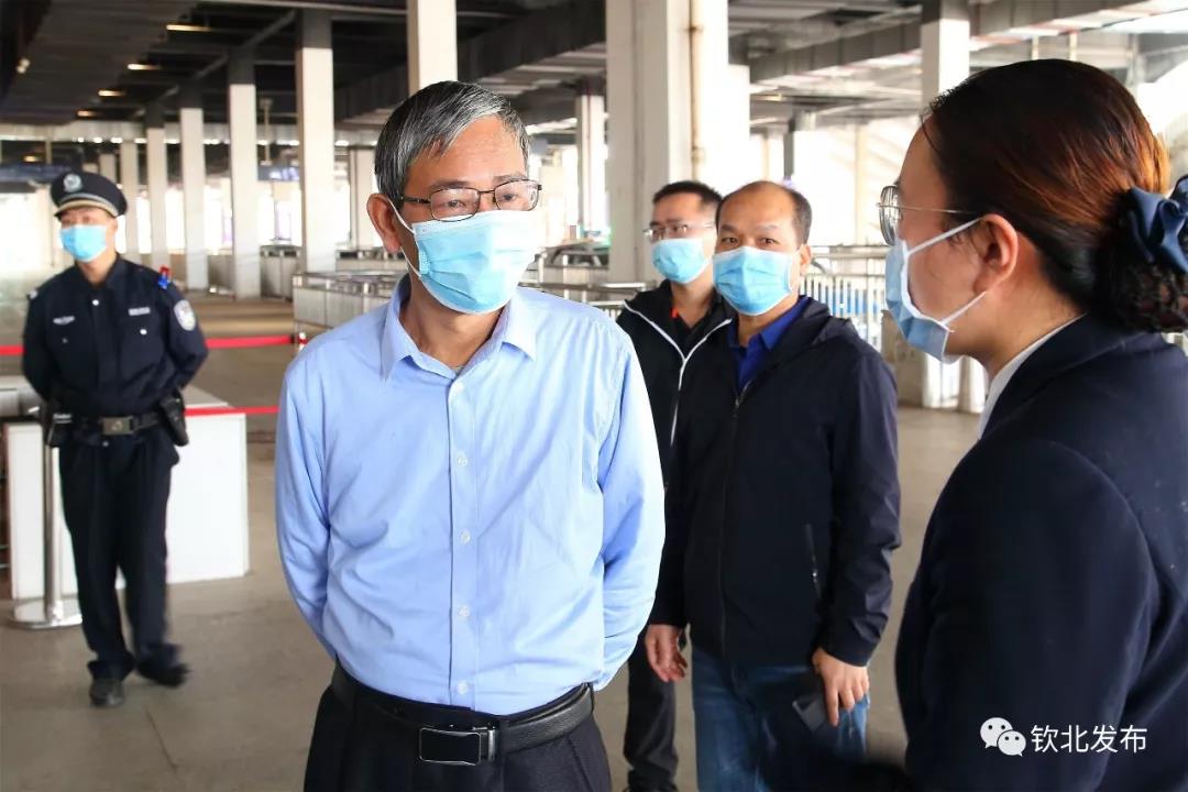 1月24日,区委书记谢立品带队到钦州火车东站,检查指导新型冠状病毒肺炎疫情防控情况。黄应春副区长,区委办、卫健局、钦州火车东站等部门相关领导一同参加。