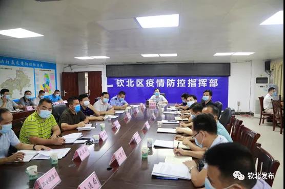 区长黄治华;区领导黄应春、蒋基勋、潘运精;区疫情防控指挥部办公室主任、副主任,各工作组组长等在钦北分会场参加会议。