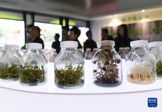 这是福建省沙县农村产权交易中心展厅展示的林下经济作物(2018年10月31日摄)。